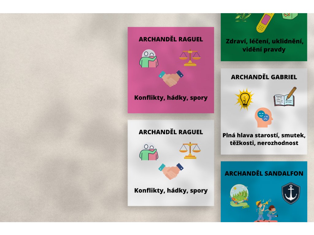 Text, který odpovídá jednomu archanděli je na kartičkách různý.